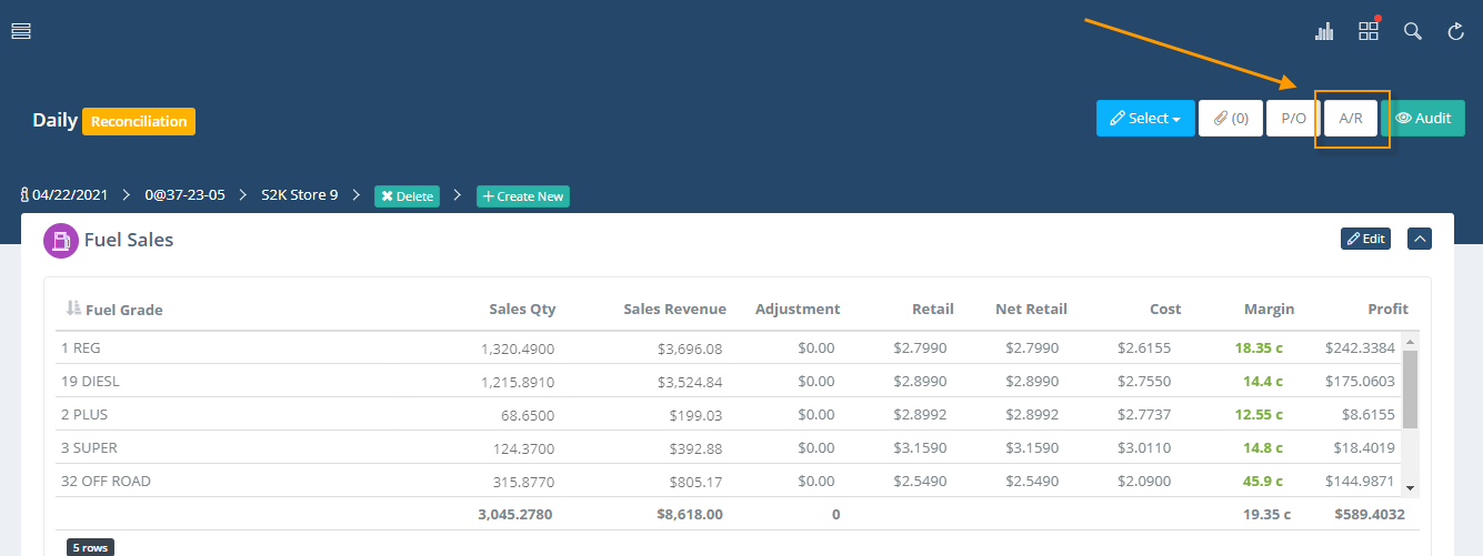 You can apply details for pay-ins, house accounts, local accounts, etc. for account/customer charges using the AR button at the top of Daily Books: